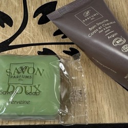 Support en bois gravé pour 1 berlingot et une savonnette.